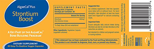 -. Binding : Health and Beauty -. Brand : AlgaeCal -. EAN : 0893618000506 -. Feature : Strontium Boost by AlgaeCal is the ONLY Strontium Citrate supplement in the market that has human clinical studies that are published and peer-reviewed by two prominent journals (Pubmed and Nutritional Journal) to prove its safety and efficacy in bone health. / If you are actively trying to increase bone mineral density then it is recommended to take both AlgaeCal Plus and Strontium Boost / Strontium Boost is a perfect compliment to AlgaeCal Plus. When used together the combination is clinically supported to build stronger, healthier bones. / ALL NATURAL INGREDIENTS. Studies have shown Strontium to be very effective in enhancing bone growth / Made and Shipped from the USA. Order yours TODAY! -. Label : AlgaeCal Inc -. Manufacturer : AlgaeCal Inc -. NumberOfItems : 1 -. PackageQuantity : 90 -. ProductGroup : Health and Beauty -. ProductTypeName : HEALTH_PERSONAL_CARE -. Publisher : AlgaeCal Inc -. Studio : AlgaeCal Inc -. Title : Strontium Boost - Natural Strontium Citrate Supplement by AlgaeCal, 60 Veggie Capsules. -. UPC : 893618000506
