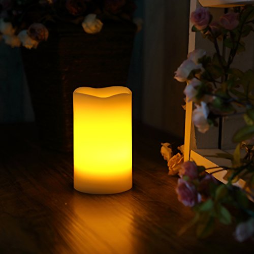 - Set of 1 unscented flickering flameless realistic dancing flame LED Candle with programmed Timer, 3*5 inch electronic candles, this Genuine Wax led candles give you a realistic appearance