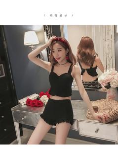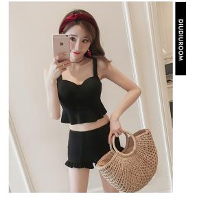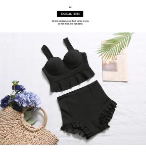 フリルビキニ ハイウエスト フリル 大人ビキニ シンプル シック 大人水着 ブラック 大人ガーリー プチプラ 海