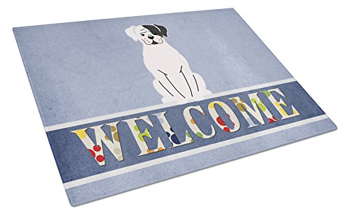 Caroline's Treasures White Boxer Cooper Welcome Glass Cutting Board Large, Multicolor