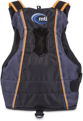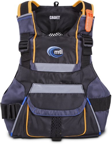The MTI BOB is an outstanding performance PFD for Youth 50-90 lbs with grown-up fit and features. Easy over-the-head entry with single side clip-closure cinch down for a secure hold. Soft shoulder straps are buckle-free yet micro-adjustable with the new tuck-away shoulder strap management system. Sculpted low profile foam body with the mesh PORTHOLE on the back is cool in more ways than one. Generous reflective panels and trim with contrast color stitching. Handy cargo pocket with soft fleece hand warmer tunnel and edgy Cadet Black color makes the BOB the ultimate Generation "Y" life jacket. SPECIFICATIONS: USCG: Type III, Buoyancy: 12 lbs., Sizes: 50-90 lbs.Feature