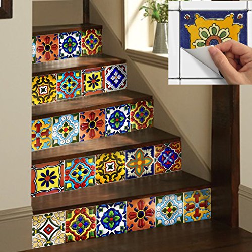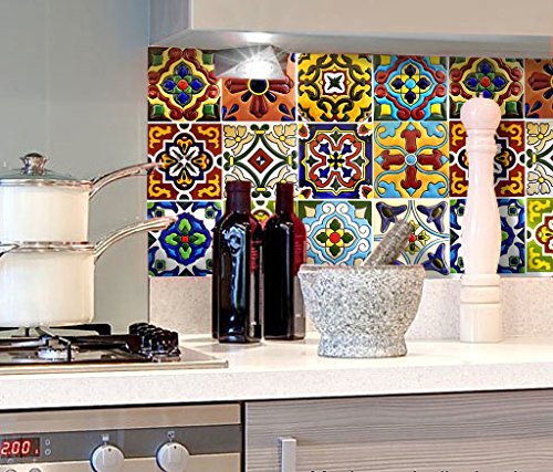 Tile Stickers Mexican Spanish 40pc 4-1/4in Peel and Stick for kitchen and bath Tr001-4Q