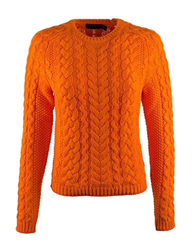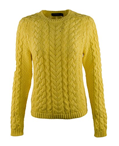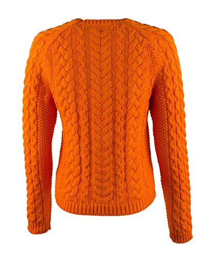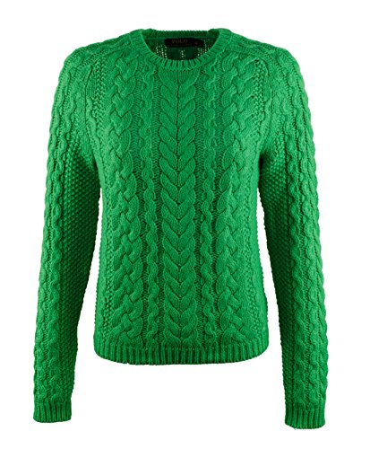 100% Cotton, Women's crewneck sweater featuring an intricate Aran-knit pattern, long sleeves with ribbed cuffs and hem
