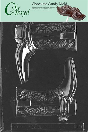 Cybrtrayd Life of the Party K081 Cowboy Boots Hand Tooled Leather Western Chocolate Candy Mold in Sealed Protective Poly Bag Imprinted with Copyrighted Cybrtrayd Molding Instructions