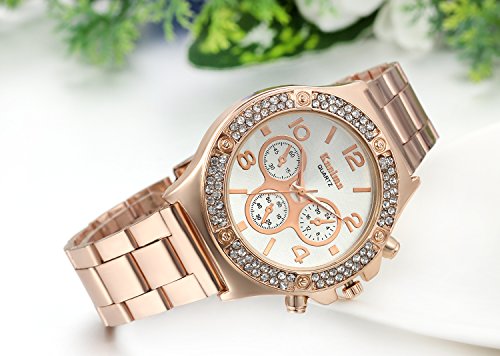 -. Title : JewelryWe 上品 高級感 レディース/メンズ ウオッチ 腕時計 ダイヤを嵌め ステンレスバンド クオーツ ビジネス 日常 アナログ 時計