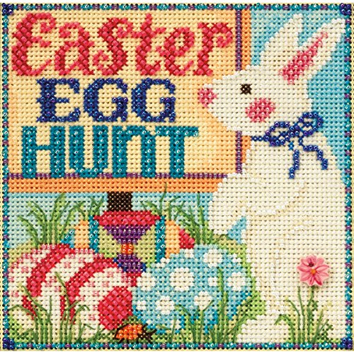 Egg Hunt Spring Buttons & Beads Counted Cross Stitch Kit-5x5 14 Count