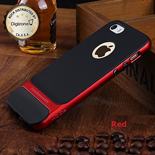 iPhone 5S/5 Case, ROCK® [Royce] Anti-scratch Drop Protection Ultra Thin Slim Fit Dual Layered Heavy Duty Armor Hybrid Hard PC+Soft TPU Protective Shell Case for Apple iPhone 5S/5 - Red/Black