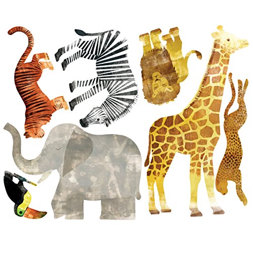 - Includes 7 peel and stick Wild Animals wall stickers in various sizes.
