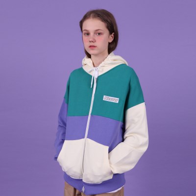 Color block hoodie zipup-emerald