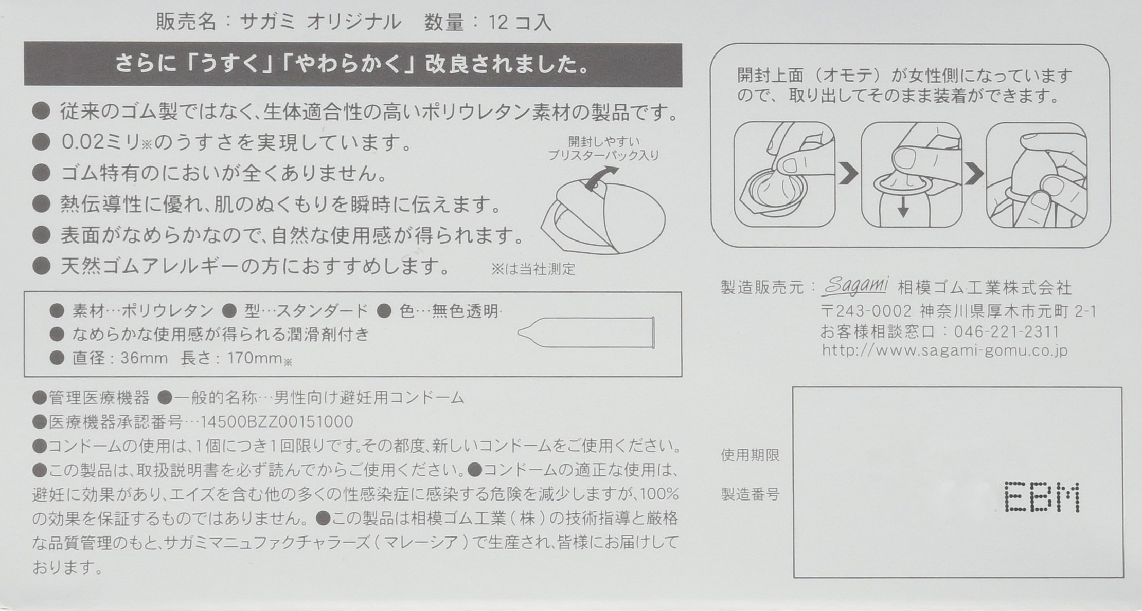 Sagami Original | Condoms | 002 0.02mm 12pc x3