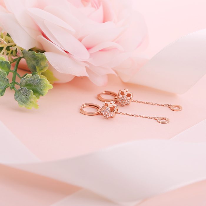 메인 플라워 단면 0.75CM / 체인길이 3CM+하단 로즈골드링 0.5CM