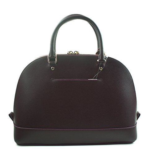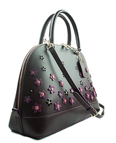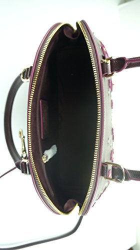 -. Brand : -. Color : Oxblood Burgundy -. Department : womens -. EAN : 0889532515776 -. Feature : Crossgrain leather / logo and flower appliques on the front with gold tone rivets / gold tone feet on the bottom / interior zipper pocket and 2 slip pockets slip pocket on the exterior back, double handles, removable and adjustable crossbody strap / 13" (L) x 9-3/4" (H) x 4-3/4" (D) -. ProductGroup : Shoes -. ProductTypeName : HANDBAG -. Size : Medium -. Title : Floral Applique Sierra Satchel Leather Handbag in Oxblood Burgundy 38410 -. UPC : 889532515776