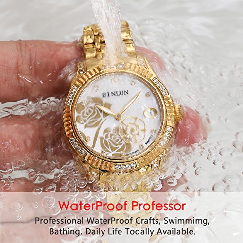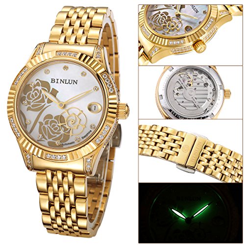 -. Title : BINLUN Women's Automatic Watches Rose Second Hand Diamante Waterproof Wrist Watch for Ladies