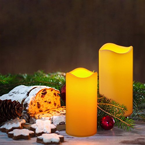 [Cozy Ambiance]: Warm amber glow and flicker flame create a relaxing aura. Flameless candles are suitable for decorations birthday party, dinner table, Halloween and wedding etc. It can be also used at a bar, coffee house, bedroom and outdoors etc