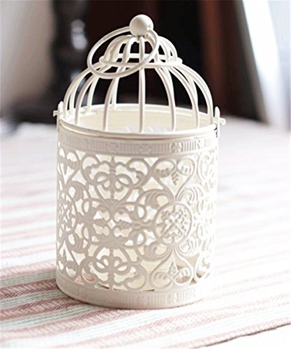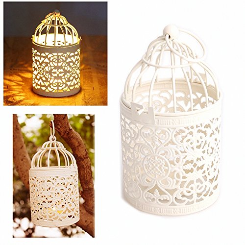 Candle Holder, New Vintage Creative Hollow Hanging Bird Cage Candle Holder Candlestick Lantern Party Wedding Home Decor,Best Anniversary, Birthday Or Valentine’s Day Gift (white)