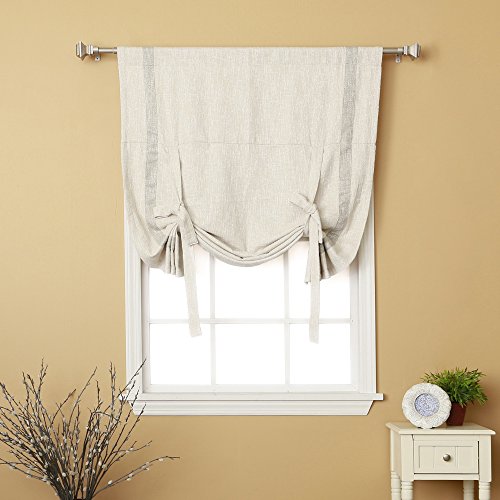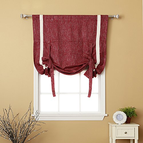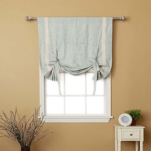 Color-coordinated bordered detailing adds contemporary lines and texture to these Tie-up Faux Linen Curtains; Available in 6 colors: Aqua, Burgundy, Cream, Grey, Mint and Sage; Hang with a standard or decorative rod and brackets (not included);Measurement : Each panel measures 42" W x 63" L | Grommet Size: 1.6" Diameter of Grommet, Including Grommet Rim 2.7");Machine washable for easy care.Feature