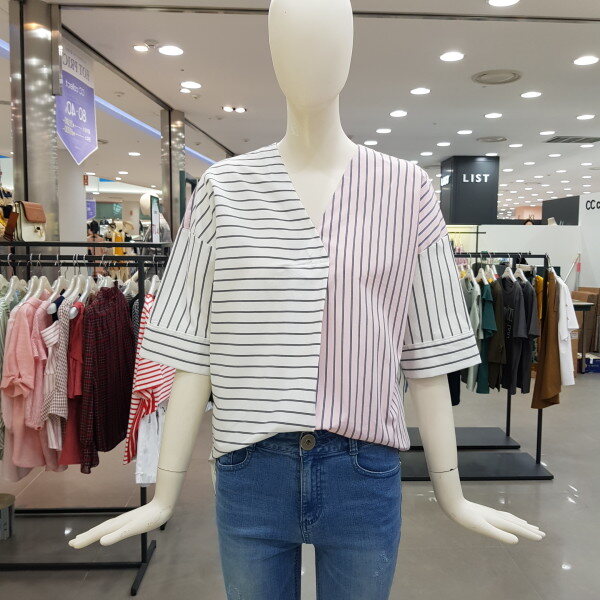 시원한목선 언발스트라이프무늬가 캐쥬얼한 코디와 루즈한코디하기좋음