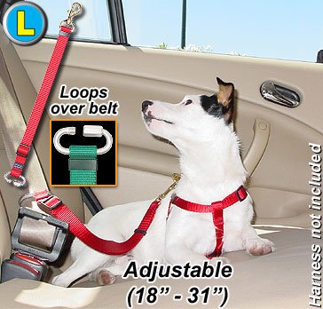 Studio : Nor Pac Pet Products Publisher : Nor Pac Pet Products Binding : Misc. Product Description These handy leashes are designed to keep your dog secure in his/her seat to help prevent driver distraction. Cetacea offers two styles to accommodate different seatbelt configurations. The safety tethers are adjustable in length. Note: Cetacea recommends that dogs, like children, be secured in the rear seat of any vehicle. Safety tethers work best with a deluxe adjustable harness. User must determine suitability of use. Features clips around almost anything our 2" stainless quick-link threads easily secure onto any seat-belt preserves your vehicle's belts and upholstery. 0