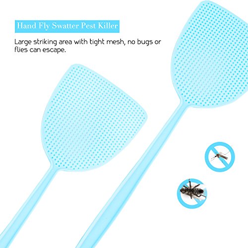 Long Handle Plastic Fly Swatter Manual Swat Pest Control with 17.5'' Durable Pack of 2 ( Blue )