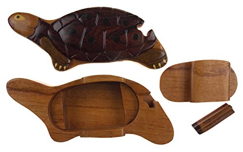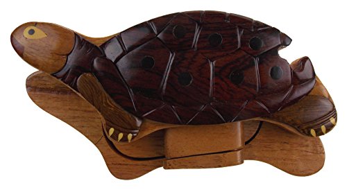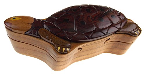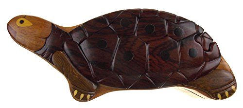 Studio : Hickoryville Publisher : Hickoryville Binding : Kitchen Product Description Handmade carved Turtle intarsia dark wood puzzle box bundled with Hickoryville instructions on opening and closing the puzzle box. This secret puzzle box is a beautifully handcrafted creation, high quality workmanship, made of natural wood. The box is a puzzle that comes apart into four pieces and discovers a secret space to keep special treasures. Inside storage space is approximately 2.5 inches long x 1.8 inches wide. Every box is a unique, handcrafted creation and yours may vary slightly from the photos. 0