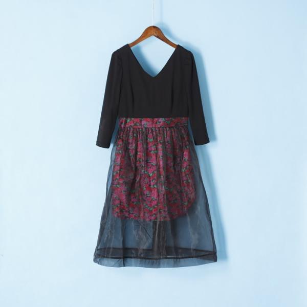 シースルーなレース切替デザインのドッキングワンピースです♪