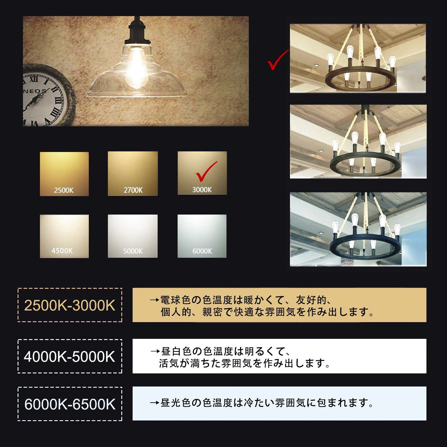 Color temperature: 3000 K (corresponding to light bulb color)
