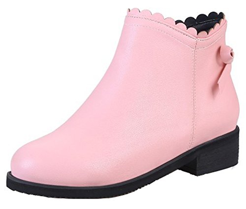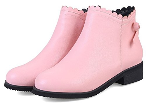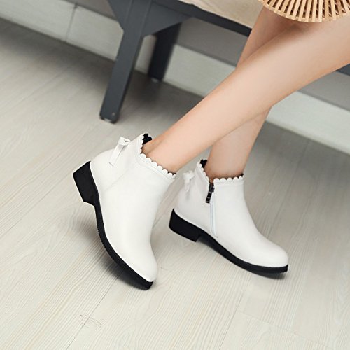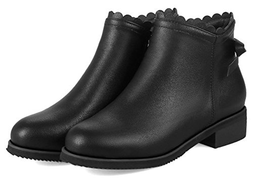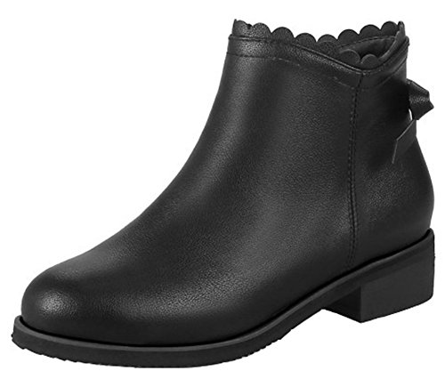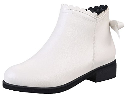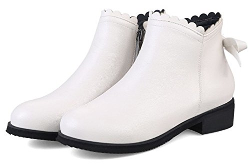 (Mofri)/Women's/Boots/DIRECT FROM USA/Mofri Women's Sweet Bow Round Toe Low Block Heel Short Boots Side Zipper Ankle Booties