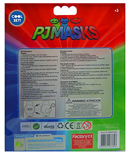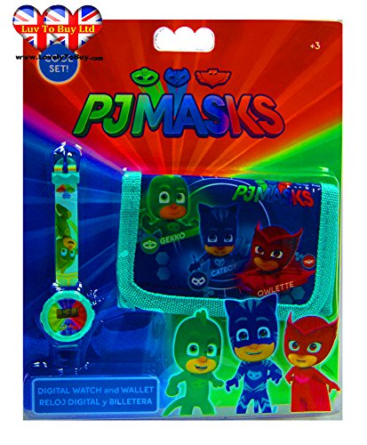 We have a 100% Satisfaction Guarantee : We want all Customers to be 100% Satisfied with their Purchase.If you are not 100% happy with your order.Please get in touch with Us PJ Masks Wallet & Digital Watch Set,Children Watch,Kids Watch,Official Licensed. (Official licensed ) This PJ Masks children's Digital watch is a colourful and ideal for young children who are a fan of the film. It displays the date and time. This is a great way to teach your children how to tell The Time & Date and to enhance their Intellectual development. Image result for Not suitable for children under 3 years Feedback: Please contact me 'before' leaving feedback if there is any concern or problem with your order. There is never any need for you to be an unhappy customer, or for there to be any misunderstandings. Items will be shipped within 1 business day after payment completed or cleared.Feature