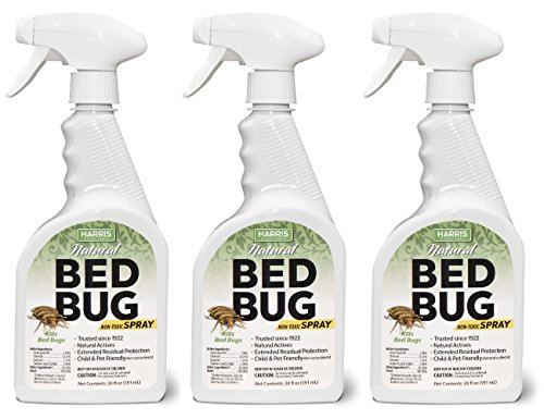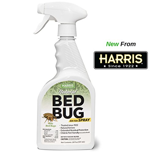 Harris Natural Bed Bug Killer contains cedar wood oil, clove oil, geranoil and sodium lauryl sulfate. These are all natural ingredients that work together to kill bed bugs effectively and offer residual protection. Always follow label directions and shake well before use.