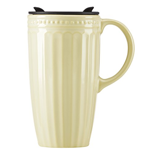 -. Title : Lenox French Perle Groove Travel Mug with Handle