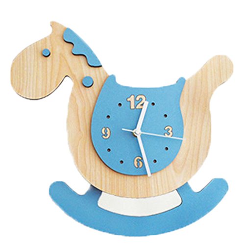 (YoumeHome)/Kids' Furniture Room Decor/Room Decor/DIRECT FROM USA/Kids' Room Decor Wall Clock Swinging Non Ticking Silent Wood (Blue)