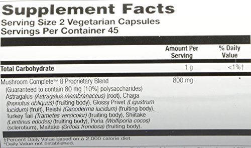 Product DescriptionSolaray Mushroom Complete 8 is a comprehensive blend of 8 different mushroom species including astragalus, chaga, privet, reishi, turkey tail, shiitake, poria and maitake.0