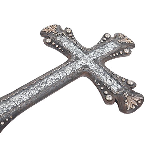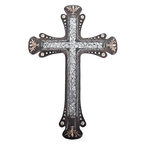 19" Large Silver Western Wall Cross Broken Glass Floral Trim