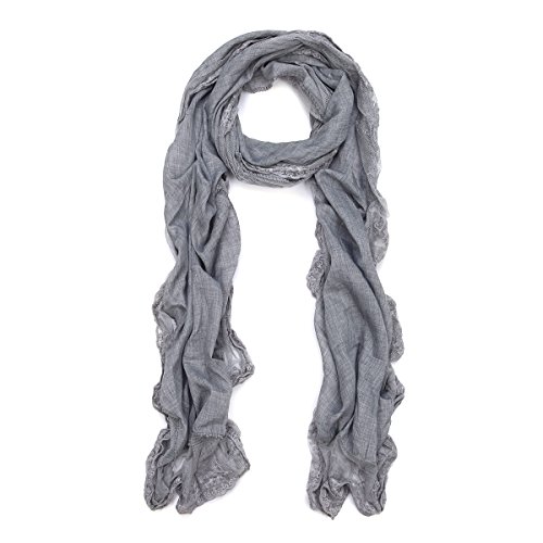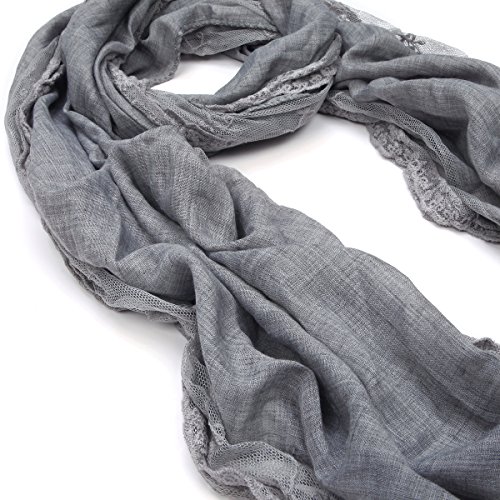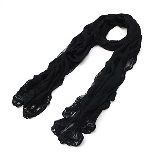 Binding : Apparel Product Description This pretty cotton lace scarf is a great addition to your collection of fashion accessories. Solid color cotton fabric with wide scalloped lace floral trim all around. Feminine and artistic. Trendy, versatile, and lightweight. Perfect for all seasons. Brings you simple effortless style. This makes an excellent gift on any occasion. TrendsBlue® is a registered trademark. 0