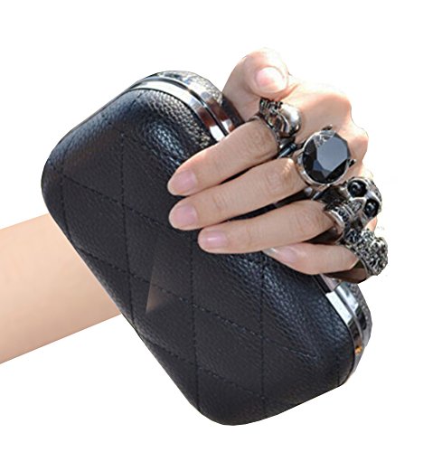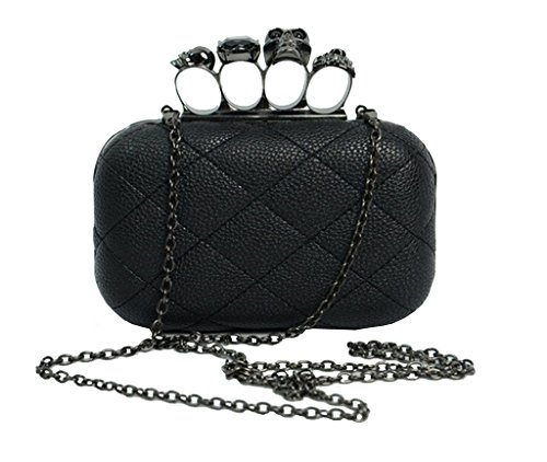 Cougar's Collection Skull Clutch Soft PU Leather Ring Clutch Purse Detachable Strap