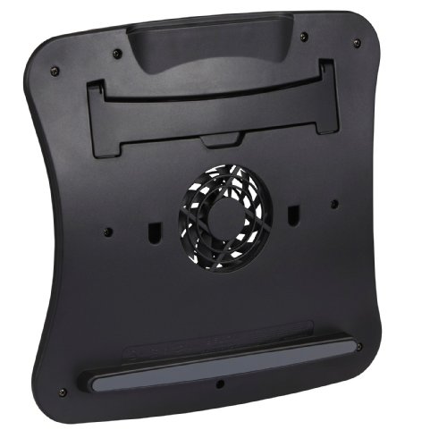 -. Feature : Gentle slope improves typing comfort and reduces wrist strain / Raises screen height to help reduce neck strain / Fits conveniently within laptop bag / Patented wave design enhances cooling capabilities / Convenient storage compartment for USB cable when not in use