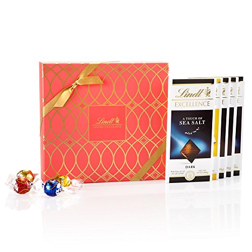 Contains 40 LINDOR truffles in milk, dark, white and caramel and 5 Excellence chocolate bars in 70% Cocoa, A Touch of Sea Salt and White Coconut