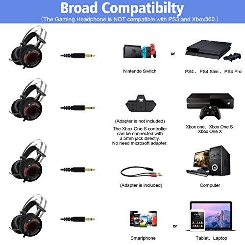 Wide Compatibility: Support PS4 Pro, PS4 Slim, Xbox One X, Xbox One S, Nintendo 3DS, PSP, Computer, Mobile Phone or other game devices with a 3.5mm headset jack. Please note you need an extra Microsoft Adapter (Not Included) when connecting to an old version Xbox One controller.