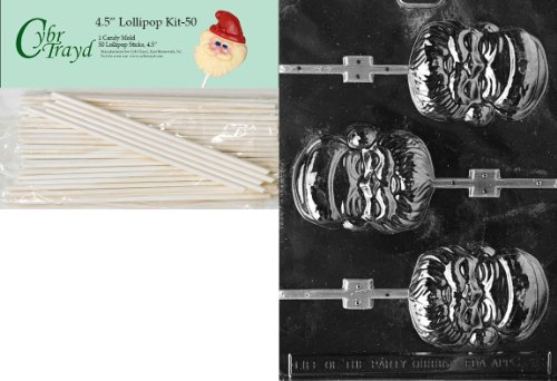 Cybrtrayd 00045St50-C036 Santa Face Lolly Christmas Chocolate/Candy Mold with 50 4.5-Inch Lollipop Sticks