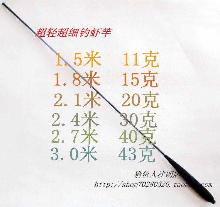 Features: This section of ultra-light fishing shrimp fishing rod pole (lighter than cigarettes), adults and children are suitable for use, do not worry for a few hours continuous fishing will be tired. Do not have to worry about fishing shrimp feel. The best choice for shrimp