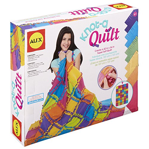 ALEX Toys Craft Knot A Quilt Kitis an easy way to instantly create a super soft quilt. There is absolutely nocutting, sewing or knitting involved! Simply tie the pre-cut fringe squares together one by one. The fleece squares come in 6 bright colors. Kids will beable to knot a 3.5 foot by 4.5 foot quilt in no time! Includes 48 fringed 9inch squares. Recommended for children 6 years of age and older.Feature