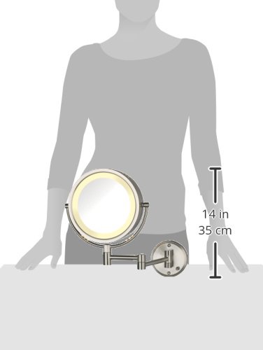 Jerdon HL75ND 8.5-Inch Lighted Direct Wire Wall Mount Makeup Mirror with 8x Magnification, Nickel Finish