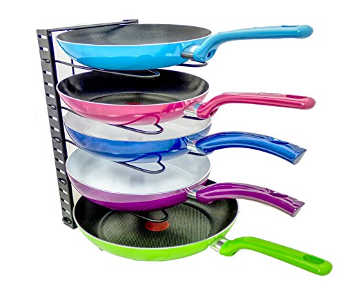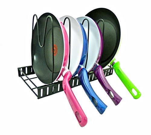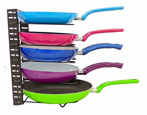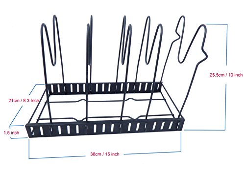 ?????????The Perfect Adjustable Pan Rack Organizer has 5 distance-adjustable shelves that can be calibrated to accommodate cookware like pans, pots, saucepans, griddles of different sizes. Keep pots and pans organized in your kitchen easily. Its designed to be used in a in multiple different orientations and is perfect for your counter top, base cabinet or pantry,. This sturdy steel rack can hold 5 pots or pans with lids at once. The U-shape frame design provides a reinforced metal structure, built of heavy duty metal with diameter 4.5mm which suits all pans at home! Great organization solution for shelfless cabinets, disorderly counter top areas under the sink. Steps for usage: 1.Remove all of the packing material from the organizer rack. 2.Separate the shelves from the base. 3.Insert the ends of the shelf into the slots of the base by squeezing the sides, Place the shelves apart according to the desired pan/lid size. 4.Make sure to install the shelf with "feet" on the end of the base. 5.The rack is designed to hold 5 pans or lids. 6.You can either lay it flat or place the rack upringht(best for base cabinet or pantry). 7.If placing upright, mske sure that the bottom shelf is suing the slot closest to the edge and has to be in contact with the surface. 0 |