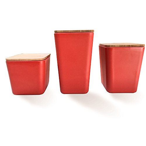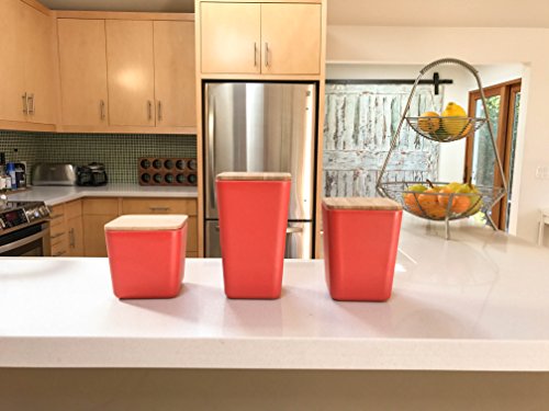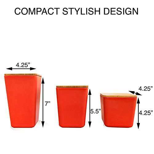 MEASUREMENTS - set contains 3 canisters in DIFFERENT SIZES for easy identification - Large is 7" tall (44 fl. oz), Medium is 5.5" tall (32 fl. oz), and Small is 4.25" tall (24 fl oz.). Top Opening MEASUREMENT is 4.25" by 4.25"