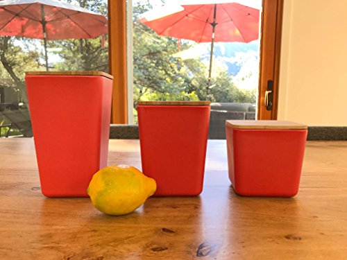 Base of container is made from BAMBOO FIBER. Unique, eco friendly durable and renewable material. Has the feel of smooth melamine, but is environmentally friendly