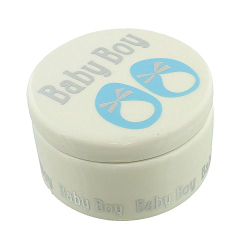 -. Title : Lovely Ceramic Baby Boy Cream and Blue Colored Trinket Box by Haysom Interiors