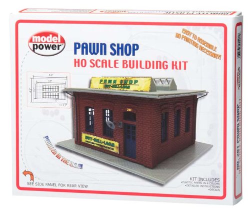 Studio : Model Power Publisher : Model Power Binding : Toy Product Description This is the HO Scale Pawn Shop Plastic Model Kit by Model Power. Suitable for Ages 14 Up. FEATURES: No painting necessary - kit molded in 4 colors Decals Detailed instructions INCLUDES: One Pawn Shop REQUIRES: Assembly Hobby knife (RMX886909) Plastic cement (HCAR3415) Sprue cutters (HCAR0630) SPECS: Scale: HO 1/87 Dimensions: 4-1/2" x 4-1/2" (114.3mm x 114.3mm) 0