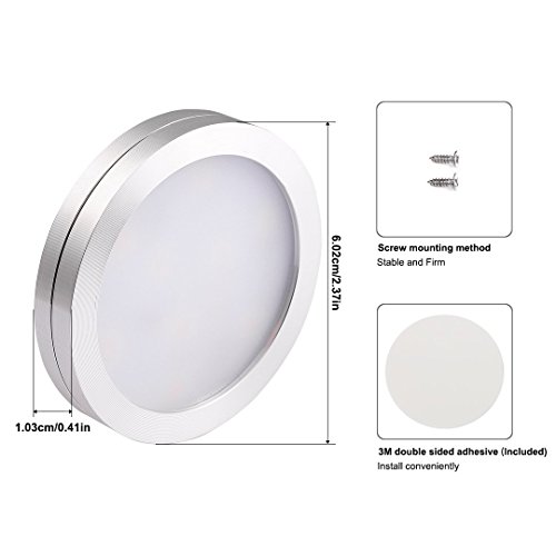 - 【Simple Install & Energy Saving】Small and exquisite puck light. 0.4inch slim design can stick it on narrow place (3M double tape included). 2W 170 lumens each puck light equals to a 25W incandescent bulb, which helps to save over 90% electric power.