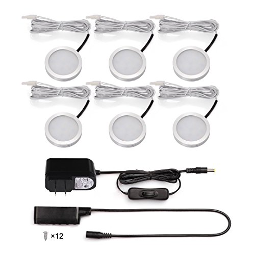 B-right Set of 6 LED Puck Lights, UL Listed Power Adapter, 1020lm Total of 12W DC12V 3000K Warm White Under Cabinet Lighting, 3M Sticker Included