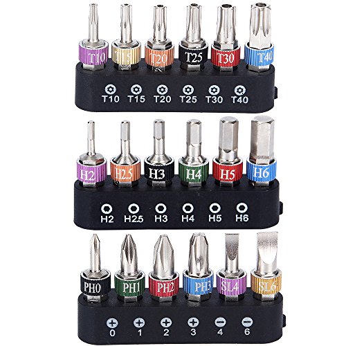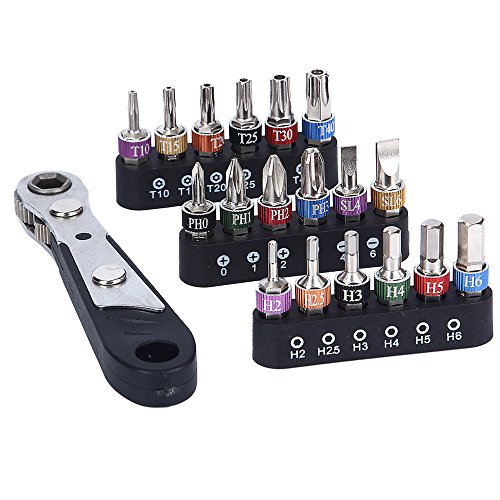 Tonsiki 19 Pieces Hex Shank S2 Micro Bit Ratchet Wrench Screwdriver Bits Set with Philips,Slotted,Hexagon and Torx